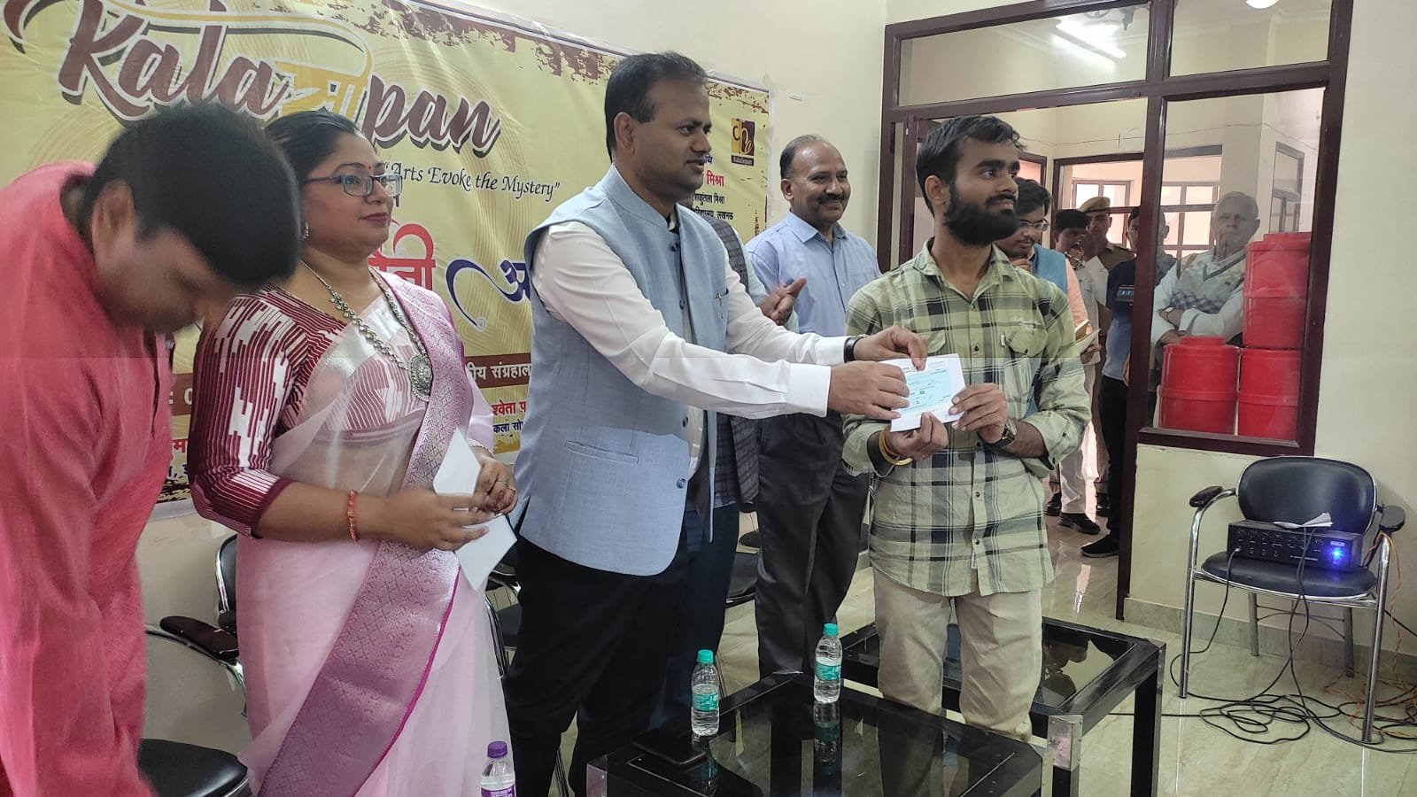 इस अवसर पर राजा मानसिंह तोमर संगीत एवं कला विश्वविद्यालय ग्वालियर के चित्रकला विभाग के अध्यक्ष डॉ. बलवंत सिंह भदौरिया ने प्रतिभागियों को बधाई देते हुए कहा कि नव अंकुरित मन के भावों को देखना बहुत ही सुकुनदायक होता है। यहां पर बहुत सी कलाकृतियां ऐसी हैं जो समाज को एक अच्छी और नई दिशा देने में सहायक सिद्ध हो सकती हैं।