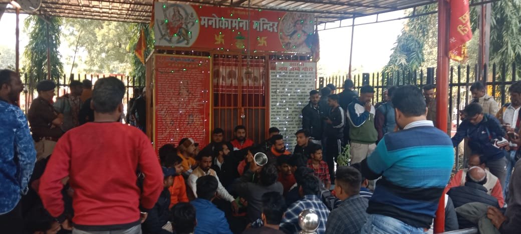 हालांकि पुलिस की इस पहल को उद्वेलित विश्व हिंदू परिषद और बजरंग दल के लोगों ने मानने से इंकार कर दिया है। पुलिस का कहना है कि आगे की कार्रवाई के लिए समय दिया जाये और धरना खत्म किया जाए लेकिन प्रदर्शनकारी पहले कार्रवाई की बात पर अड़े हैं और मंदिर परिसर में नारेबाजी और धरना प्रदर्शन जारी है।